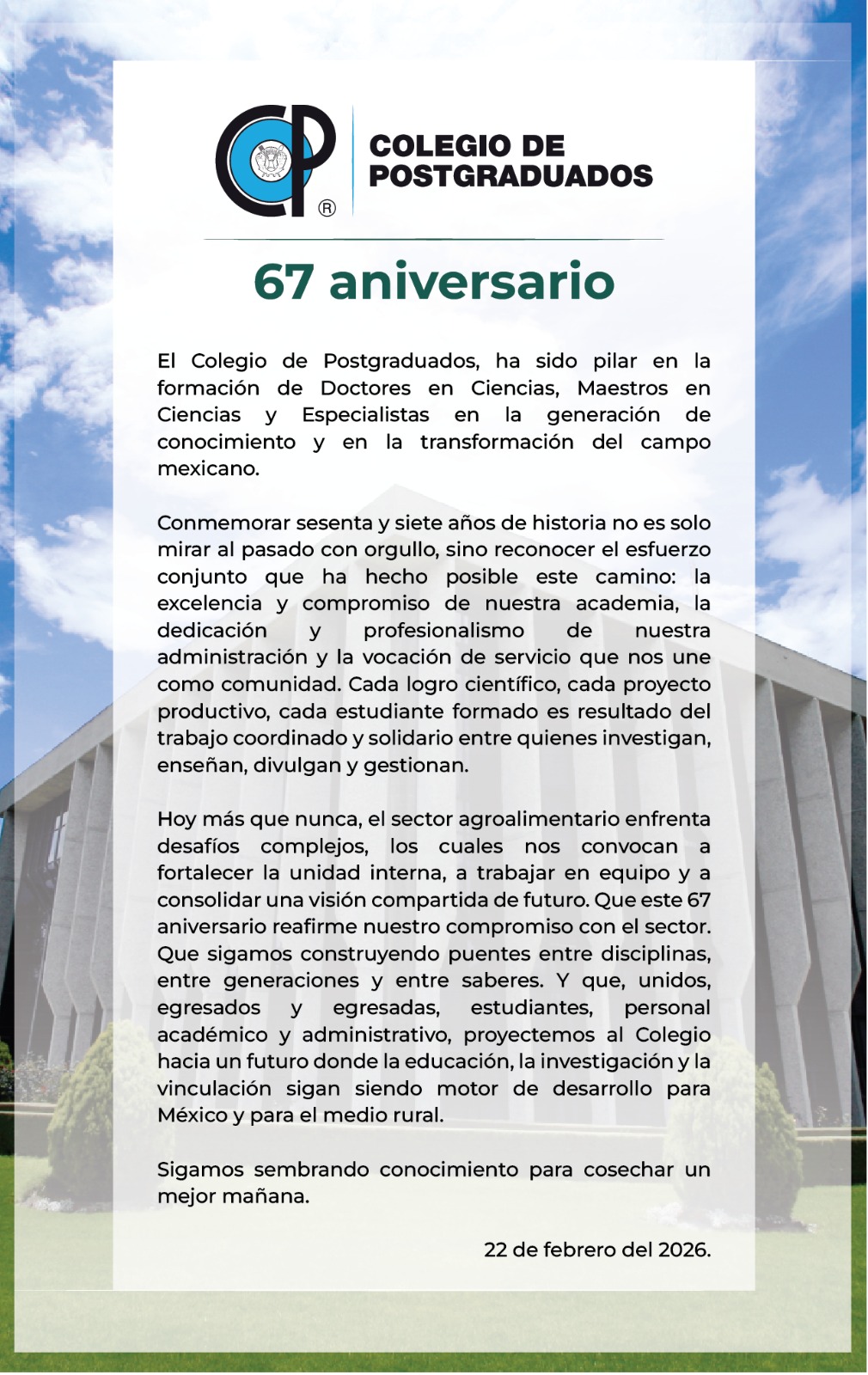 Durante el 2023, el Colegio de Postgraduados (Colpos) trabajará proyectos estratégicos...