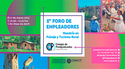 Amatlán de los Reyes, Veracruz, a 17 de marzo de 2022. La Coordinación de la Maestría en Paisaje y Turismo Rural del Colegio de Postgraduados Campus Córdoba, organizó el jueves 17 de marzo el Primer Foro de Empleadores. El objetivo principal de este espacio de diálogo virtual fue conocer el desempeño laboral de la población egresada, para verificar la afinidad o pertinencia del perfil de egreso con las demandas del campo laboral e identificar posibles mejoras o áreas de oportunidad. Así con la información proporcionada por los invitados e invitadas al evento, la academia responsable del Programa de Estudios de la Maestría podrá plantear cambios que fortalezcan las competencias más demandadas por los empleadores.