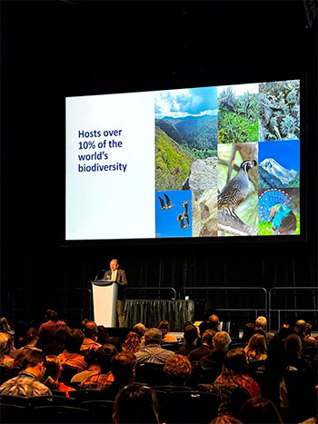 El Dr. Luis Antonio Tarango Arámbula, Profesor Investigador Titular del Colegio de Postgraduados y presidente del Mexico Chapter of The Wildlife Society (TWS A.C.), participó como Conferencista Magistral dentro de la sesión plenaria “Braiding Knowledge Systems for Wildlife Conservation”, con la presentación titulada “Biodiversity in Mexico: Threats, Challenges, and the Need for a Collaborative Wildlife Management and Conservation Strategy”. Durante su conferencia, el Dr. Tarango destacó la importancia de fortalecer la cooperación científica entre México, Estados Unidos y Canadá para enfrentar los retos actuales de la conservación de la biodiversidad.