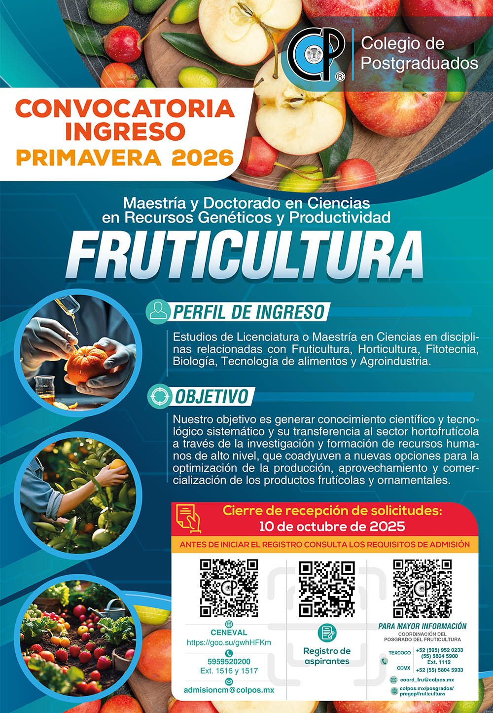 Actualmente la formación de estudiantes se enfoca a las áreas de producción frutícola, manejo de huertos, mejoramiento genético, fisiología y nutrición de árboles frutales, fisiología de la fructificación, biotecnología y propagación de frutales, fisiología y tecnología pos cosecha, así como producción y pos cosecha de ornamentales; adicionalmente como áreas emergentes están prevención y manejo del riesgo por el cambio climático, bioinformática y calidad nutricional y nutraceutica. Además por el carácter inter y multidisciplinario del postgrado en Fruticultura el estudiante establece interrelación de investigación y docencia con los otros postgrados del CP, como son: Genética, Agroecosistemas tropicales, Fitopatología, Entomología, Edafología, Hidrociencias y Estadística, entre otros. Considerando también la interrelación científico-académica y convenios con otras instituciones de educación superior, entre otras INIFAP, CIAD e instituciones de investigación en fruticultura internacionales de países como España, Brasil, Italia, E.U., Costa Rica y Chile.